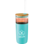 Single-wall glass tumbler. Soft, grip sleeve. Bamboo push-on lid, matching Tritan™ straw included. Non-slip bottom, fits in most car cup holders. Do not freeze or microwave. Use soap and water to clean, keep the bamboo lid dry when not using, The straws should also be pulled from the lids, as the seal between the straw and the lid is tight, store the lids and components separately from the tumbler. Choose between color imprinting or our new cutting edge, dishwasher safe, laser decoration method. BPA Free. Leed's Exclusive. 20oz. White ink only this will be a tone on tone decoration for the White tumbler.