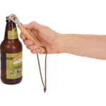 Wood Handle bottle opener with leather wrist strap. Hop on the Bull. Craft up the night. Live Classy.