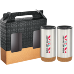 Do not miss out on one of the best gift sets of the year. Includes 2 pieces tumbler with skid-proof cork bottom 1625-69. Durable, double-wall stainless steel vacuum construction with copper insulation, which allows your cold beverage to stay cold for 24 hours and at least 8 hours for hot beverages. The construction also prevents condensation on the outside of the piece. Leed's Exclusive 16oz. Gift Box is not decorated. Photographixx is not available for the set. “For additional protection, all Drinkware pieces will be individually polybagged and inserted in the gift box.”