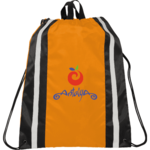 The Reflective Drawstring Bag has an open main compartment with reflective stripes, a carry handle and a cinching rope closure.