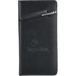 Premier leather wallet. Zippered closure keeps contents secure. Interior organization includes a Passport holder, ID holder, three business or credit card pockets, elastic pen loop, zippered pocket, and boarding document holder. Set 2767-40 includes the Cross® Travel Wallet and complimenting Cross® Signature Chrome Mini Pen