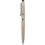Exclusive Cutter & Buck® design. Matte gold powder finish with shiny chrome accents. Twist action mechanism. Soft, rubber capacitive stylus for touch screen devices. Subtle branding on middle ring and pen clip. Includes premium black ink ballpoint cartridge. Includes 2-piece Cutter & Buck® gift box.