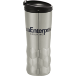 Part of our Bold Geometry trend collection this double wall vacuum insulated 18/8 grade stainless steel tumbler is sure to keep your beverages warm and your look stylish. Choose from rose gold or silver finish. Screw on lid. Keeps drinks hot for 5 hours and cold for 15 hours. Exclusive design. 15oz.