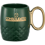 Part of our Bold Geometry trend collection this style is defined by angles that create a great tactile and visual experience. Fancy golden plated handle. Leed's exclusive. 13oz. Disclaimer: No color match for the handle.