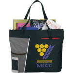 The Touch Base Convention Tote's zippered main compartment has double 20 inch handles a front mesh pocket and a front pen loop.