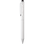 Exclusive Luxe design. Elegant ring etched bottom barrel with polished chrome upper barrel. Soft, rubber touch stylus. Subtle Luxe branding etched on center band. Pen includes premium blue ballpoint ink. Includes Luxe gift packaging.