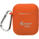 This Silicone pouch was specially designed for Airpods. It protects Airpods from dirt, dust and scratches. With an Aluminum carabiner you can attach the Airpod pouch to a handbag or a backpack. The silicone pouch features a cut out port to allow you to charge your Airpod case with it on. Airpods is a registered trademark of Apple Computer, Inc.