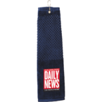 3.5 lb./doz. Hemmed velour heavyweight golf towel. Textured area for scrubbing golf clubs. Tri-folded with grommet and hook.