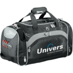 Zippered U-shaped main compartment includes padded supportive bottom board. Zippered front pocket with organization panel and earbud port access. Two ventilated zippered side pockets; one includes large shoe pocket. Unique golf tee holder on side pocket. Side carry handle can be used to hang bag in a locker. Detachable, adjustable padded shoulder strap. Signature Slazengerâ„¢ hardware and logo.