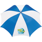 Automatic opening. Umbrella case includes a shoulder strap. Sturdy metal shaft with matching ferrule & tips. Large wood handle. Available for one-day turn with Sureship®.