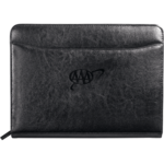 Zippered closure. Interior organizer with gusseted file pocket, business card pockets and calculator pocket. Front pocket. Pen loop. Includes 8.5" x 11" writing pad. Refills available at leedsworldrefill. Refill item number: 9091-01. Pen not included.