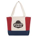 The Nantucket 16oz Cotton Canvas Boat Tote features on-trend color-blocking and an open main compartment.