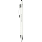 The Sicily Soft Touch Ballpoint Stylus Pen features a spray rubber coated barrel with with chrome accents. Ring cut detail. Click action mechanism. Soft rubber stylus. Black ink cartridge. Pen tip is 1.0mm.