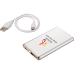 The Slim Aluminum 2200 mAh Power Bank is a lithium polymer Grade A battery device powerful enough to charge smartphones, MP3 players and more. It also includes an LED light. The reusable power bank charges via a USB cable (included)which can recharge the battery backup or be used to charge devices with a micro-USB input like Android smartphones from Samsung, Motorola, HTC, Nokia, and others. A blue LED indicator light turns on when device is fully charged. Input: 5V/800mA. Output: 5V/1000mA.
