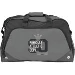 The Voyage 22” Sport Duffel features a roomy zippered, vented main compartment. The two side mesh pockets and front zippered pocket provide extra storage for all your accessories. This sport duffel offers a large front decoration area so everyone will see your brand.
