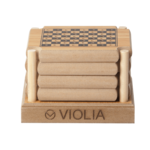 The 4 Coaster Game Set includes family favorite games in coaster form. Games included are Tic-Tac-Toe, Backgammon, Chess, and Chinese Checkers. All game pieces are stored under the coasters in the holder. Instructions included.
