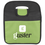 The Brisk 6 Can lunch cooler features a unique closure to secure your lunch while on the go. Made of non-woven material with a 210d front pocket and a foil lining. A plastic grab handle and flap that passes through and secures with a hook and loop closure.